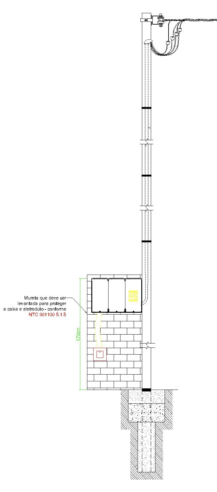 Os postes de energia que montamos e instalamos são feitos para que possam ser aprovados e ligados pela COPEL imediatamente após sua instalação, salvo em alguns casos, onde é exigido pela copel mureta de medição com alvenaria.